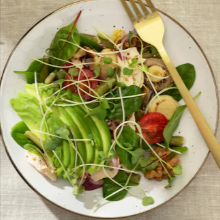 점심: 연어구이 + 샐러드 + 통곡물빵