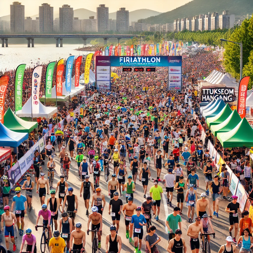 이 축제는 서울의 자랑인 한강에서 수영, 자전거, 달리기 3종 경기를 완주하며 건강을 챙기고 다양한 문화·체육 프로그램을 체험할 수 있는 행사예요. 작년에는 총 63만 명이 방문하며 뜨거운 관심을 받았어요.