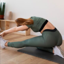 ① 무릎 당기기 스트레칭: 등을 바닥에 대고 누운 상태에서 무릎을 천천히 가슴 쪽으로 당겨 20초간 유지.
